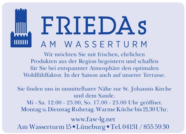 Wir wünschen Ihnen vergnügliche Stunden bei Ihrer kulinarischen Entdeckungsreise durch die Region Lüneburg. Alle teilnehmenden Restaurants / Cafés freuen sich auf Ihren Besuch!